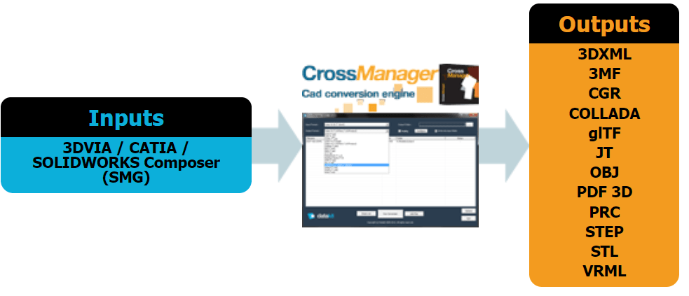 3dxml files are typically created as exports from dassault systemes' 3dexperience application. Target format contains polygonal information. Geometric transformation is simple and will not take much time. 3dxml files are typically created as exports from dassault systemes' 3dexperience application.. Geometric transformation is simple and will not take much time.
